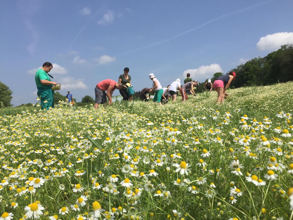 …Rumanček pravý pestujeme od roku 2019 na ploche 5 hektárov. Každý rok koncom Septembra vysievame na pripravenú pôdu Rumanček pravý, ktorý počas jesene a zimy rastie a na jar, väčšinou v Máji, je už plne zakvitnutý a vhodný na zber. Z Rumančeka zbierame pomocou špeciálneho zberača iba kvet, pretože tento obsahuje najviac silíc – účinných látok. Hneď po zbere Rumanček odvážame na vysušenie do sušiarne a keď je dostatočne usušený, putuje do špeciálneho stroja – odstopkovača – kde je zbavený stopiek alebo lístkov materskej rastliny. Po odstopkovaní sa Rumančeku v našom laboratóriu odmeria obsah silíc a spraví sa mikrobiológia a v prípade potreby sa zasanuje. Potom už máme finálnu surovinu, ktorú ešte v prípade porciovaného čaju porežeme na menšie kusy a v prípade sypaného čaju, je po odstopkovaní už pripravená na zabalenie.
